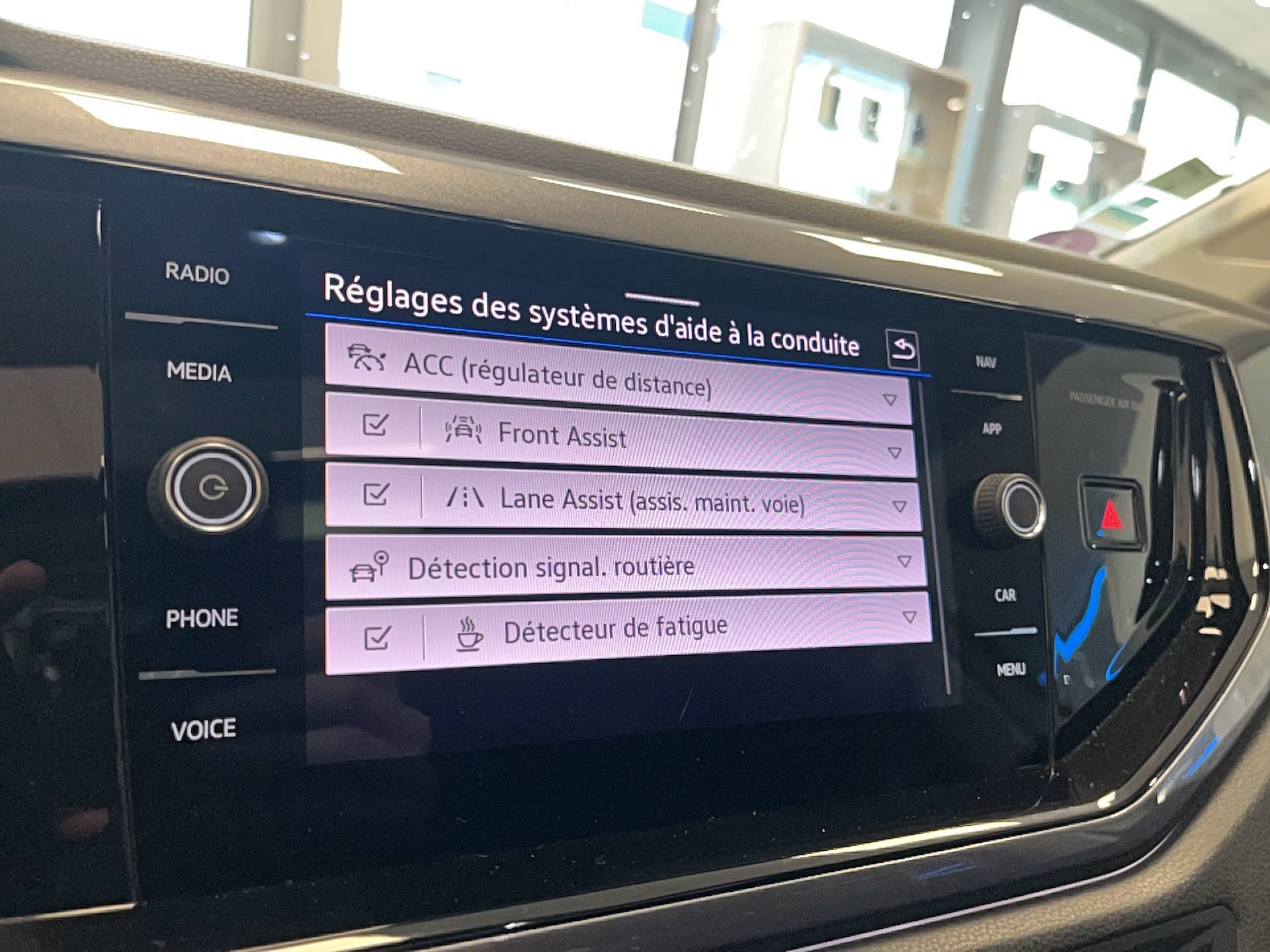 - Front Assist: système de surveillance périmétrique contribuant à la prévention des collisions avec fonction de détection des piétons et des cyclistes. Ce système freine automatiquement le véhicule en cas de détection d'obstacle aussi bien en ville que sur autoroute