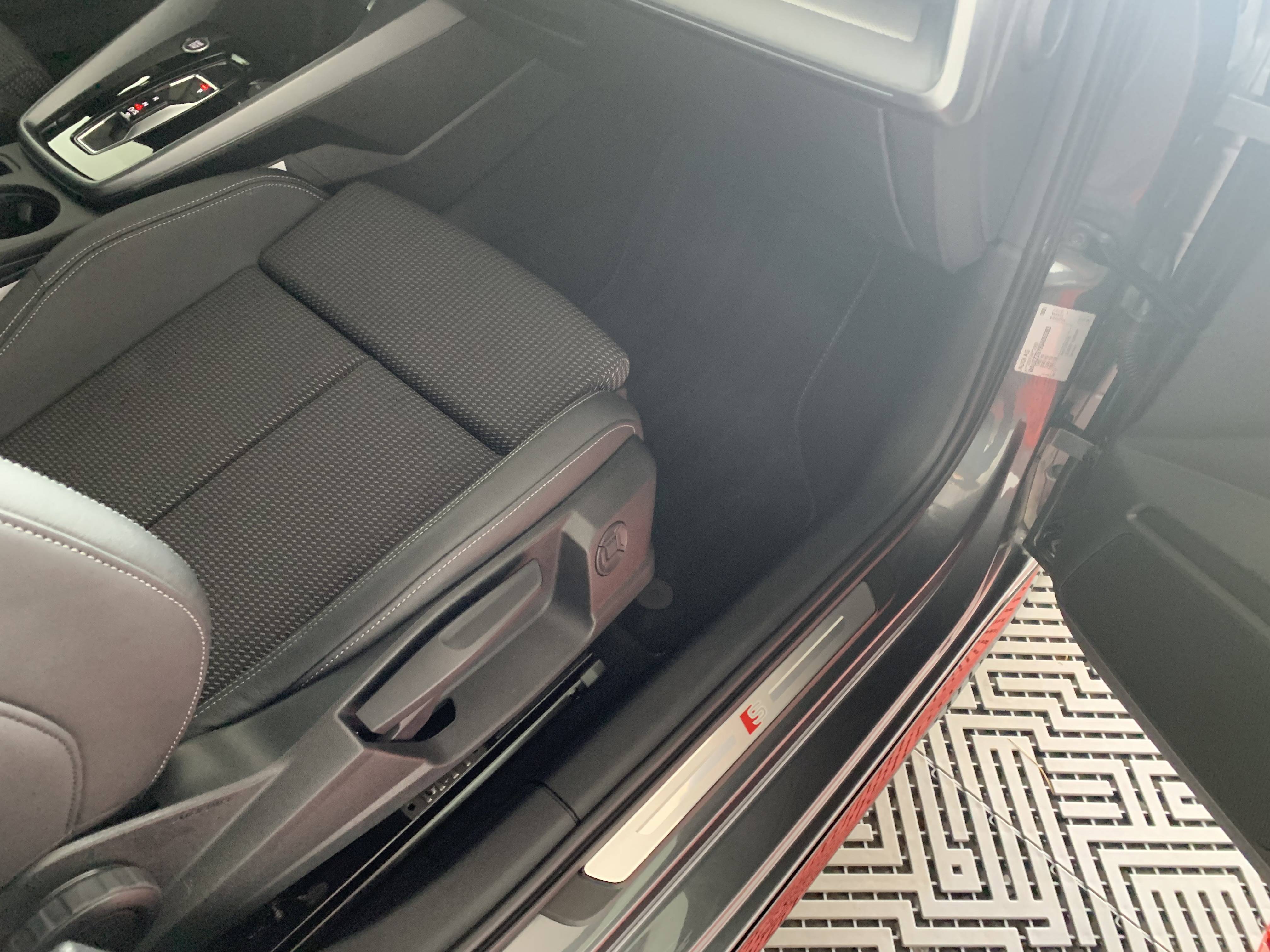 - Pack intérieur S line 1 Sièges sport à l'AV, Sellerie en combinaison tissu Pouls/similicuir avec estampagne S, Pédalier en acier inoxydable, Enjoliveurs de seuil de porte avec inserts en aluminium à l'AV, Dossier de banquette AR rabattable, Application de volant en style chrome, emblème S, poignées de volant en cuir perforé et couture contrastée, Pavillon en tissu noir, Accoudoir en matériaux synthétiques
