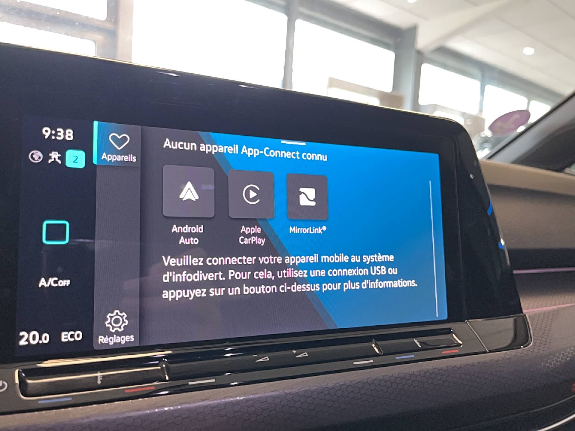 - App-Connect sans fil, affichage et contrôle via l'écran tactile de la voiture du contenu, des fonctions et des applications compatibles présents sur le Smartphone