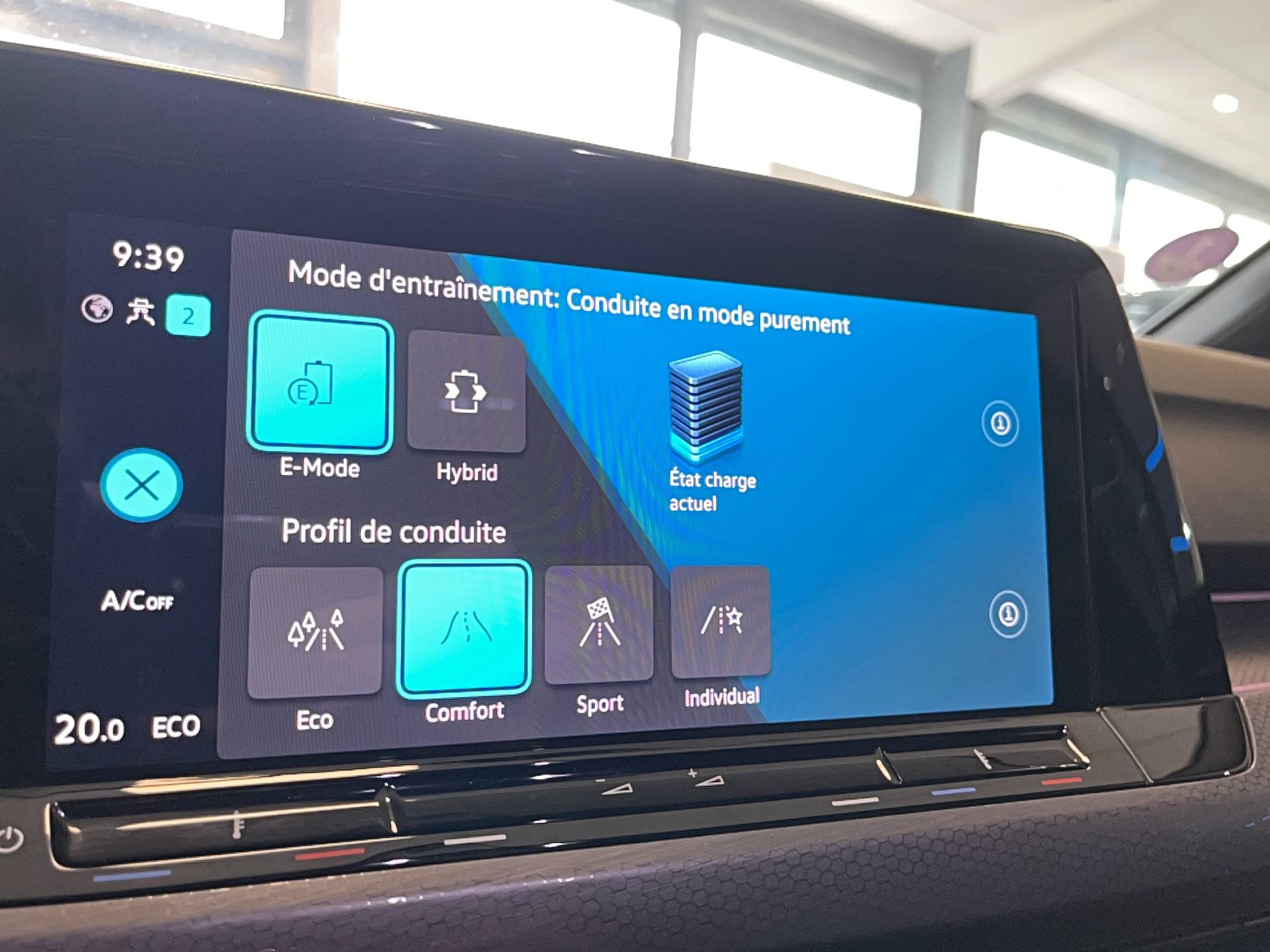 - Selection du profil de conduite