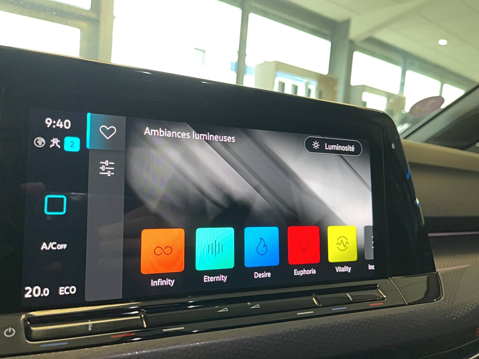 - Eclairage de plancher à LED à l'AV avec possibilité de sélectionner la couleur d'éclairage