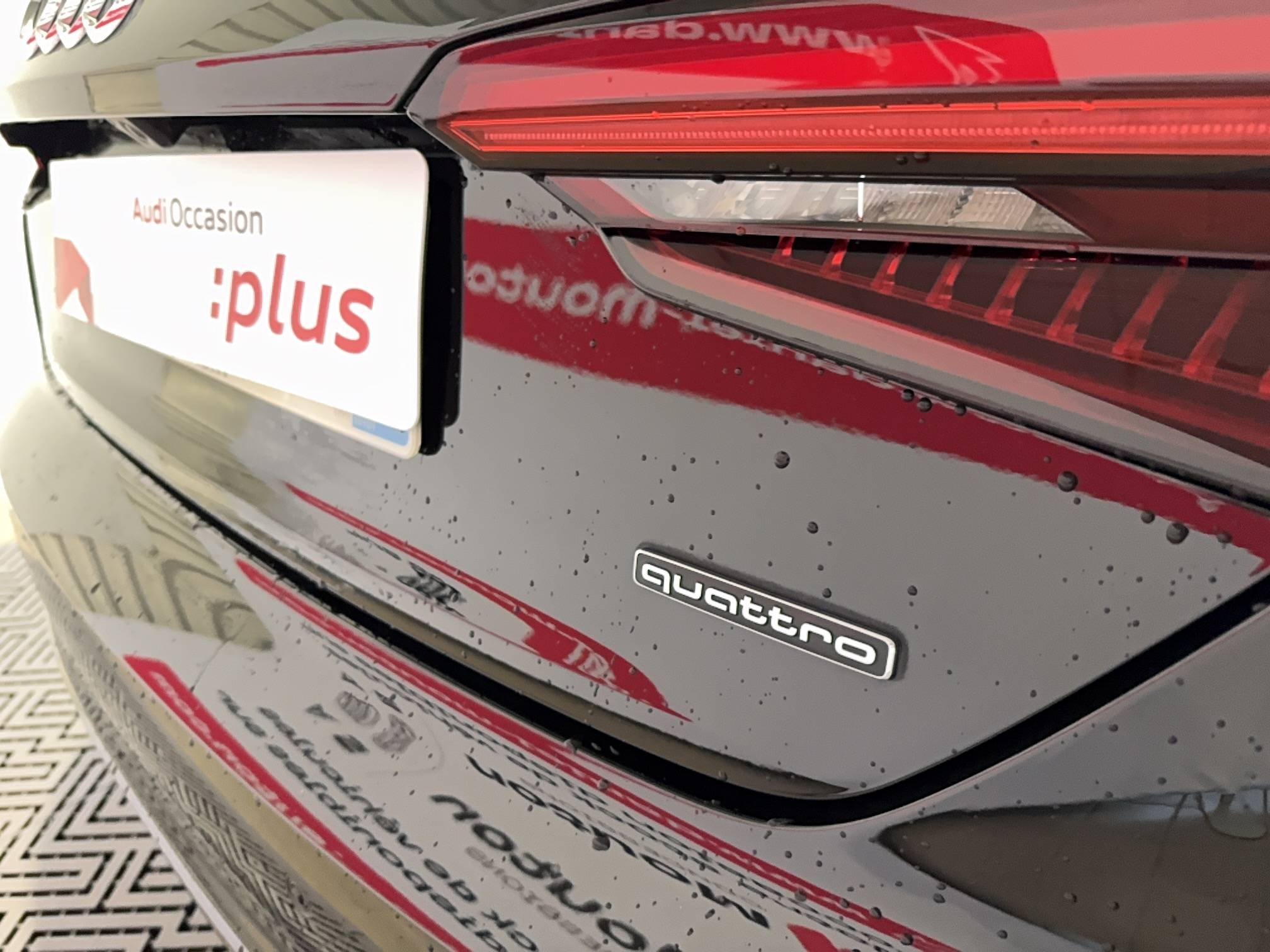 - Identification du modèle et de la technologie sur le capot de coffre inscription quattro (sur versions quattro) sur la calandre, sur le capot de coffre et sur le tableau de bord côté passager AV, sur demande sans identification de modèle/technologie à l'AR
