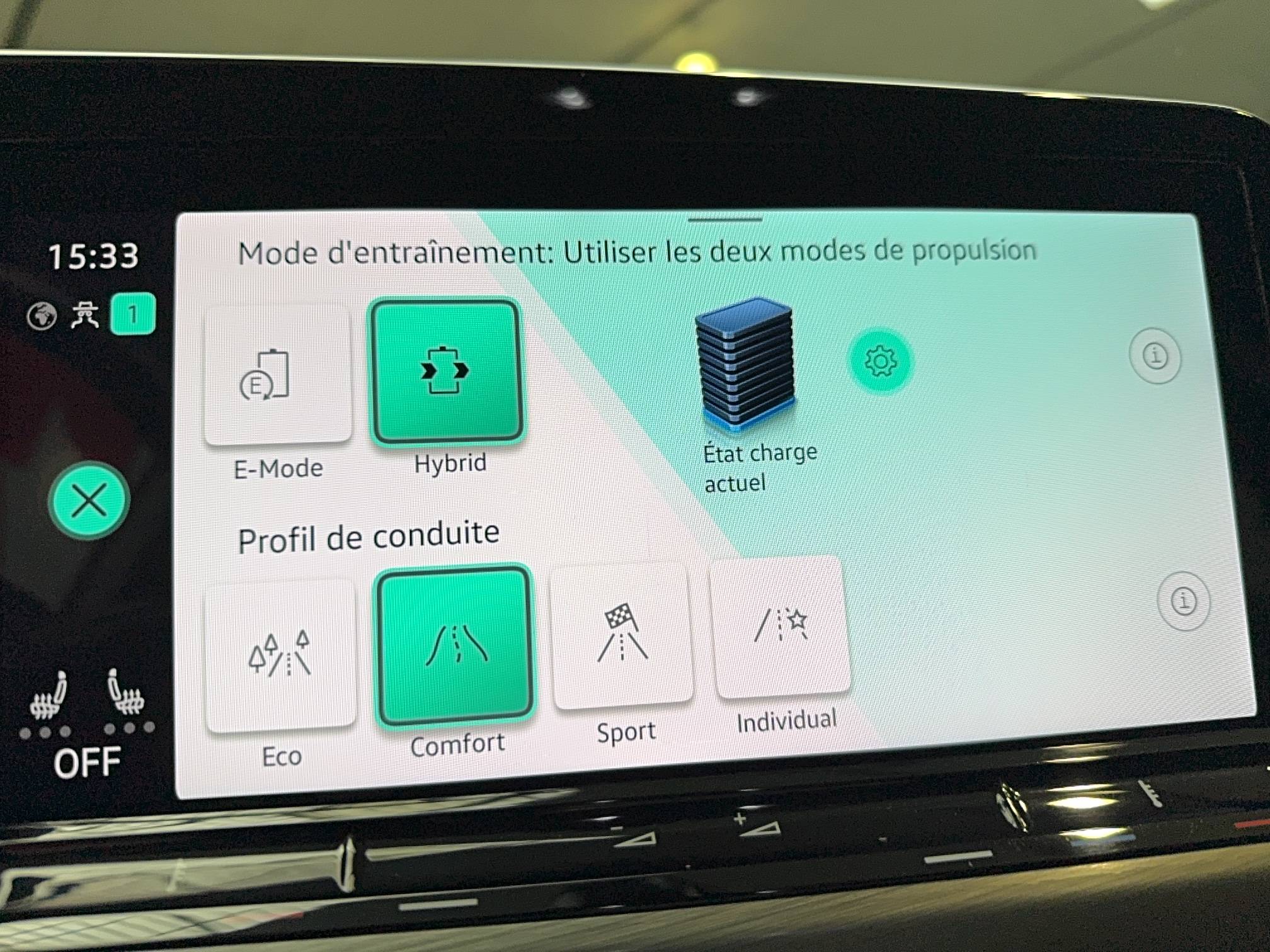 - Sélection du profil de conduite